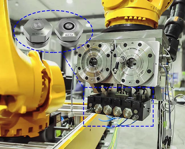 Combinatie-effect: Het gehele vervangingsproces is geautomatiseerd. Robots of actuatoren hoeven de gereedschapsmodule alleen maar op de nulpuntlocator te "vastzetten", wat automatisch zorgt voor een nauwkeurige positionering en sterke vergrendeling. Tegelijkertijd zorgen de lekvrije connectoren aan beide zijden ook automatisch en betrouwbaar voor een automatische en betrouwbare koppeling, waardoor het gereedschap direct van stroom (vloeistof) en besturingssignalen wordt voorzien. Bij het loskoppelen wordt de volgorde omgekeerd: koppel eerst de connector los (gesloten zonder lekkage) en ontgrendel vervolgens de kabelzoeker.